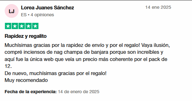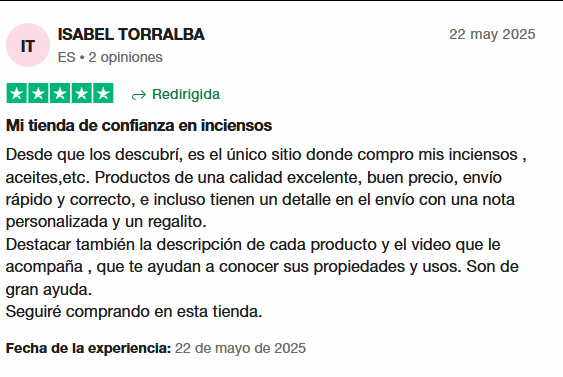 Ciertamente nuestra tienda online de inciensos, esencias y productos de la India, está centrada en el amor y el respeto que sentimos por el Hinduismo y sus costumbres. También por sus productos artesanales y tradicionales, orgánicos y ecológicos. Así mismo todos nuestros productos son importados de la India y representan una selección de la máxima calidad. Sobre todo, amamos las esencias y los inciensos: cualquier momento en el que su aroma nos abraza y envuelve se convierte en sagrado. Finalmente estamos orgullosos de afirmar a nuestros clientes que encontrarán servicio, la mejor calidad y el precio más ajustado para comprar con confianza.