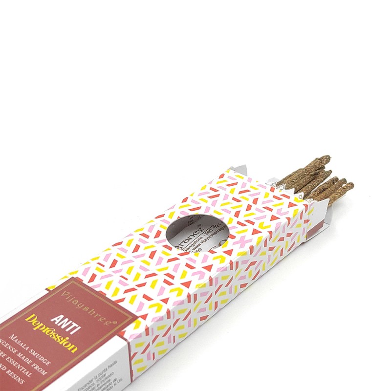 Incienso organico Blissful Blends Anti Depresion de Vijayshree Agarbatti Masala hecho a mano en caja 12 uds B2B