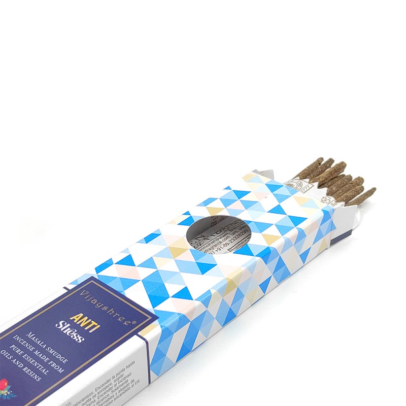 Incienso organico Blissful Blends Anti Estres de Vijayshree Agarbatti Masala hecho a mano en caja 12 uds B2B