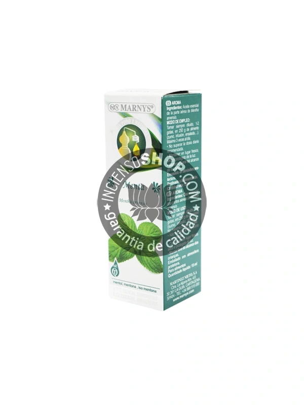 aceite-esencial-menta-marnys-caja-cenital-copiaEsencia o aceite esencial orgánico de Menta ecológico de Marnys 15ml