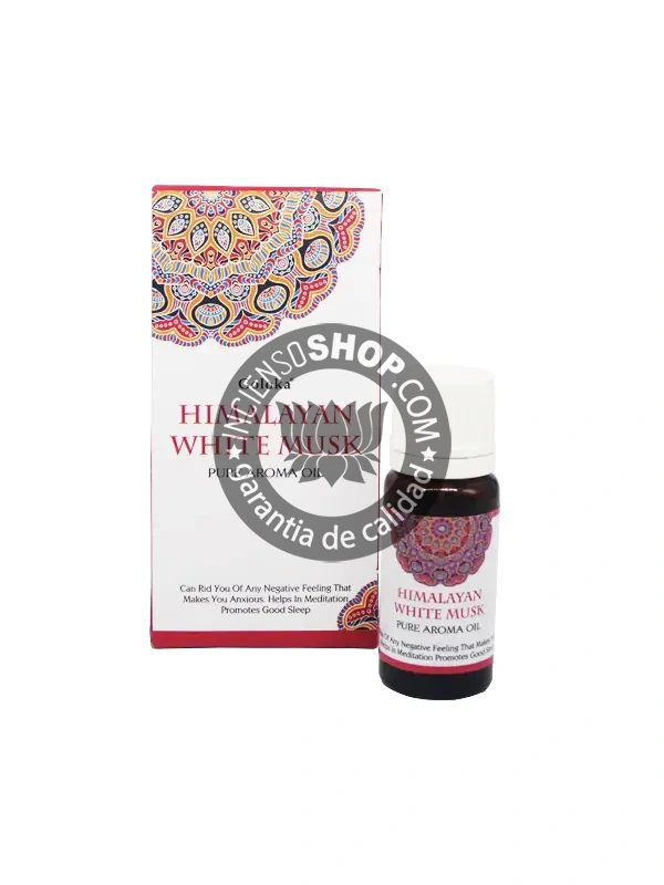 El aceite esencial Goloka de musk blanco, fabricado en la India, es ideal para endulzar el ambiente y equilibrar nuestras emociones. En aromaterapia se usa para mejorar la concentración, aliviar la ansiedad y por sus reconocidas propiedades afrodisíacas.