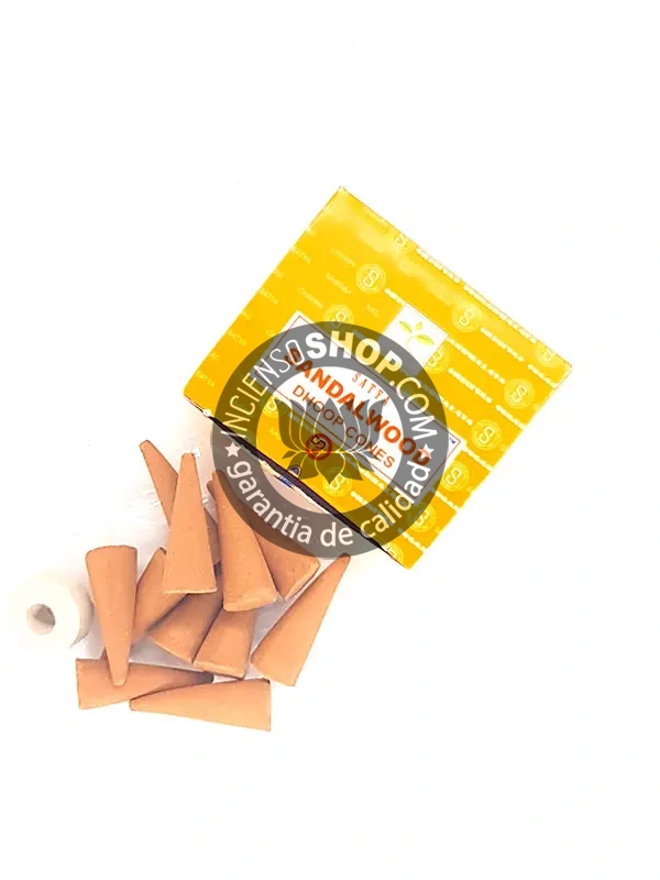 conos-sandalo-incienso-delante-copiaConos de incienso Satya sandalo tradicionales unidad de 15g
