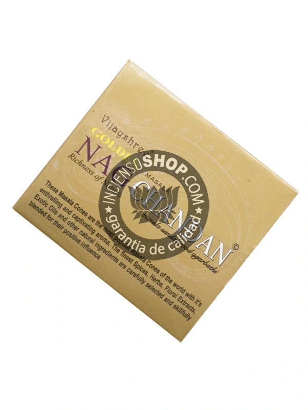 cono-golden-nag-chandan-principalprincipalConos de incienso Piramidal de Chandan Masala tradicionales y organicos de la gama Golden Nag de Vijayshree en uds de 15g