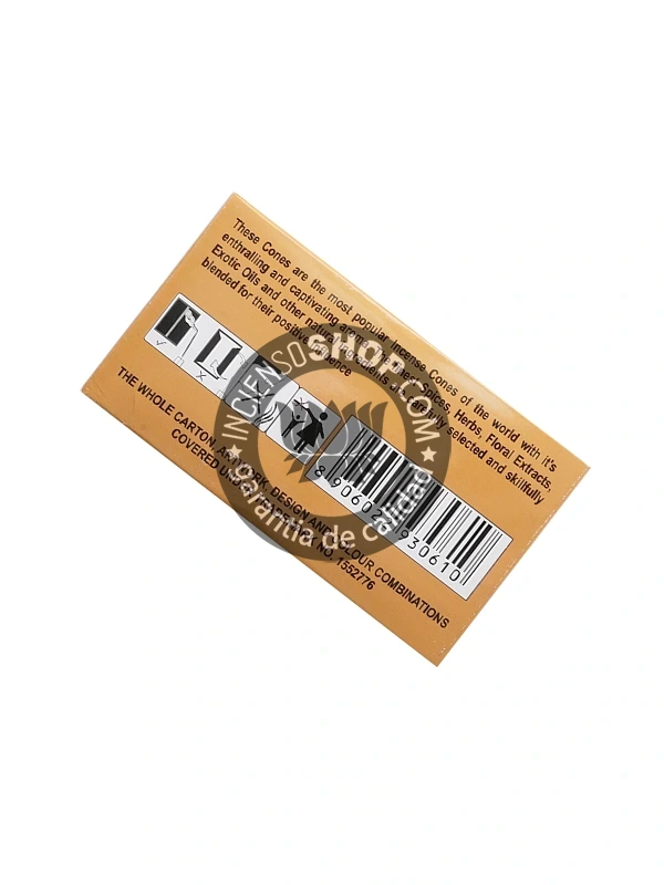 Se presenta en una cajita con 10 conos y base de piedra para quemar conos. Cada cono tiene una duración aproximada de 20 minutos. Es importante no colocar el cono sobre superficies que puedan dañarse o quemarse. El producto incluye un quemador adecuado.