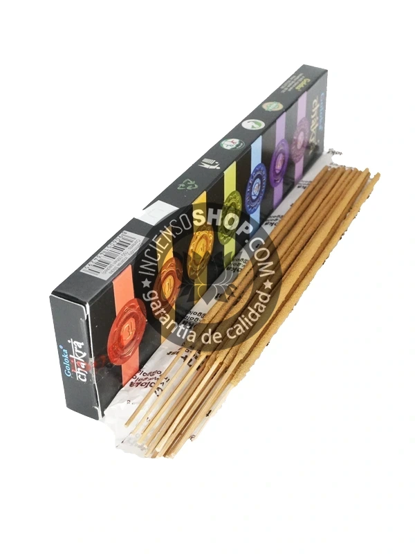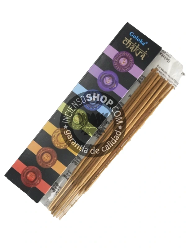 El incienso natural Black 7 Chakras de Goloka está diseñado para activar los siete centros energéticos del cuerpo, promoviendo el equilibrio físico y emocional. Su fragancia es dulce y amaderada, con notas de flores y frutas orientales.