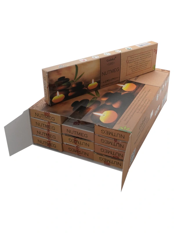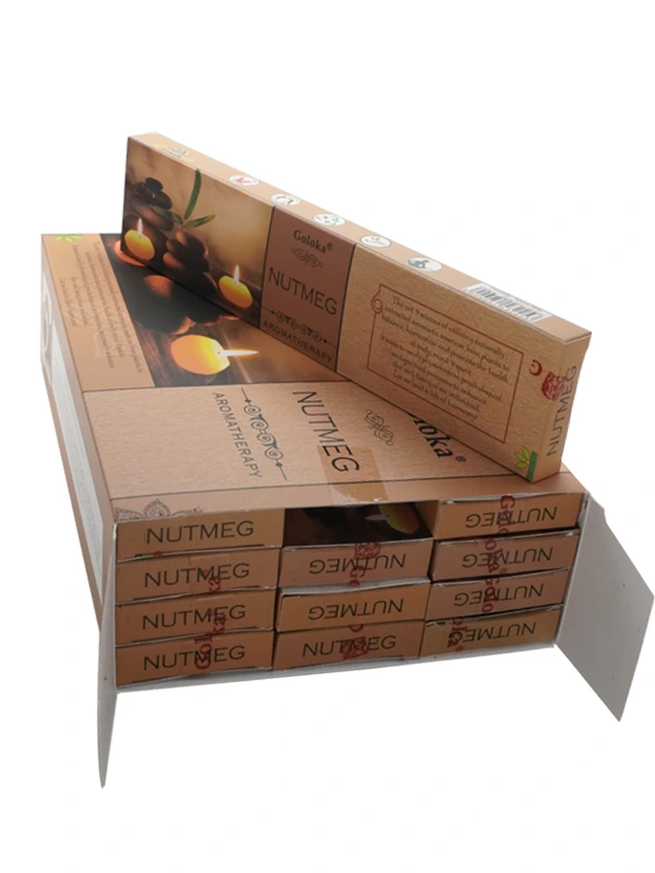 Todo lo que debes saber sobre el incienso de nutmeg para aromaterapia de Goloka en caja