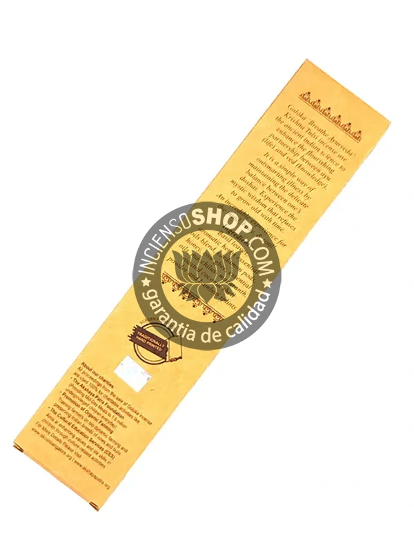 El incienso Goloka Krisna Tulsi es un producto ayurvédico, con una mezcla medicinal y 100% orgánica, que ayuda a prevenir enfermedades y mantener el delicado equilibrio físico y energético. Mejora tanto la salud física como mental, además de potenciar nuestra comunicación.