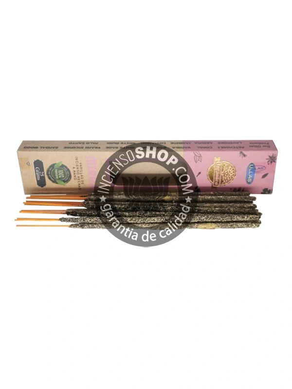 Este incienso de mirra combina un aroma único con propiedades terapéuticas reconocidas. Es un expectorante natural que ayuda a despejar las vías respiratorias, aliviar la congestión y mejorar la calidad del aire. Además, actúa como relajante natural que reduce el estrés y promueve una sensación de calma y bienestar. Su fragancia también ayuda a purificar el ambiente al eliminar alérgenos y bacterias del entorno.