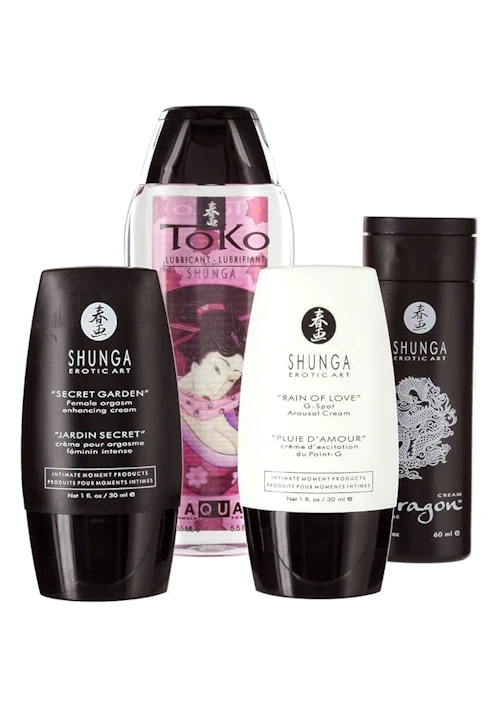 Además de sus reconocidos aceites y lubricantes, Shunga ofrece una amplia gama de productos para el cuidado del cuerpo, la sensualidad y el erotismo, pensados para nutrir la piel, estimular los sentidos y fortalecer el vÃnculo entre parejas.