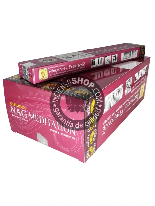 Propiedades y beneficios del incienso Golden Nag Meditation de Vijayshree en caja de 12 uds B2B