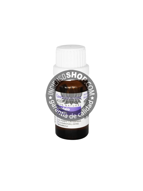 Gracias a sus compuestos sesquiterpénicos —especialmente el santalol—, posee propiedades calmantes, antiinflamatorias y afrodisíacas suaves, ideales para aliviar la ansiedad, nutrir la piel seca y crear un ambiente de paz interior. Es una de las esencias más veneradas en la aromaterapia ayurvédica y tibetana.