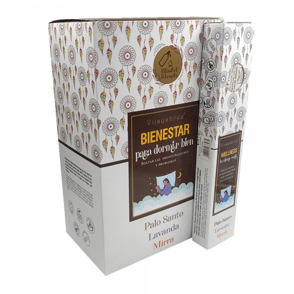 La fórmula secreta que esconde el Incienso Orgánico Gama Blissful Blends Bienestar de Vijayshree se compone de resina de mirra natural y aceite esencial de lavanda francesa, una bendición para los sentidos. Al agregar virutas de madera de Palo Santo sobre la varilla, este incienso purifica el ambiente de energías negativas y atrae el bienestar a tu espacio. Su aroma suave y reconfortante ayuda a calmar la mente, relajarte y llevarte hacia un sueño profundo e infantil. Ideal para momentos de meditación, relajación o simplemente para crear un entorno lleno de paz. Elaborado artesanalmente por Vijayshree, marca con más de 40 años de tradición en Bangalore, India, siguiendo la técnica Agarbatti Masala descrita en los Vedas. Compra ahora en nuestra tienda online y experimenta el poder transformador de esta gama única de Vijayshree.