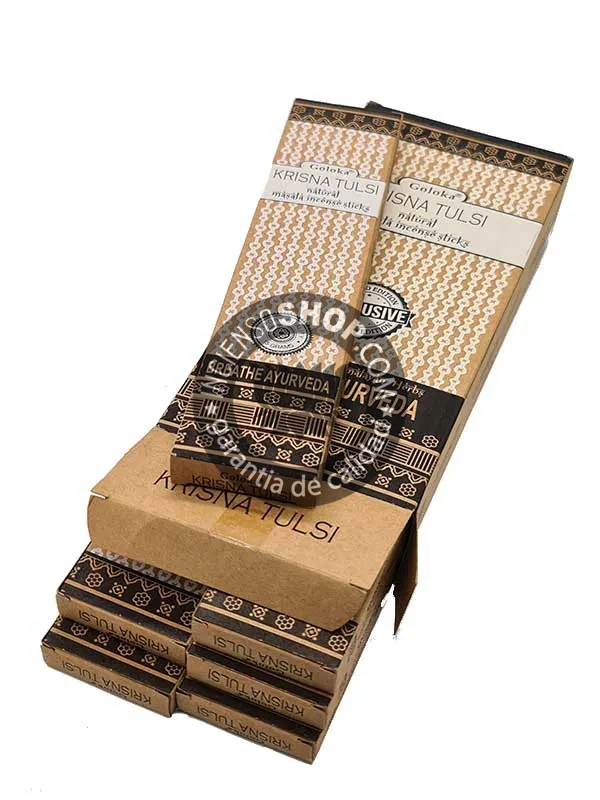 El incienso Goloka Krishna Tulsi es un incienso ayurvédico orgánico con un aroma dulce, amaderado y duradero, ideal para prácticas espirituales, yoga y meditación.