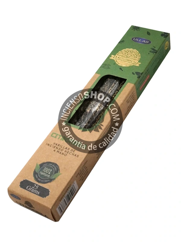 Presentación de la caja grande de incienso de citronela orgánica de Ullas