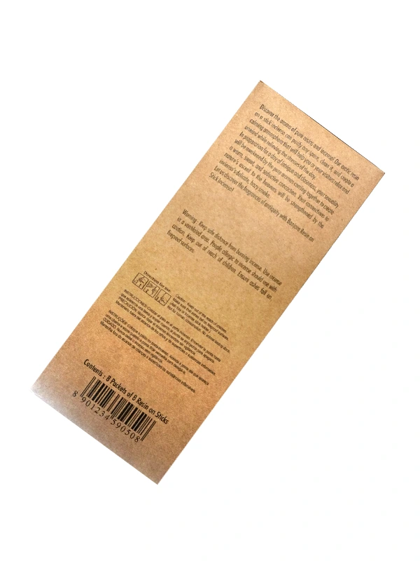 La caja grande del Banjara Mirra Maya presenta 8 unidades en cajas de 25 gramos que contienen 8 varillas de incienso. Tiene un período de larga duración, entre 45-60 minutos aproximadamente por varilla.