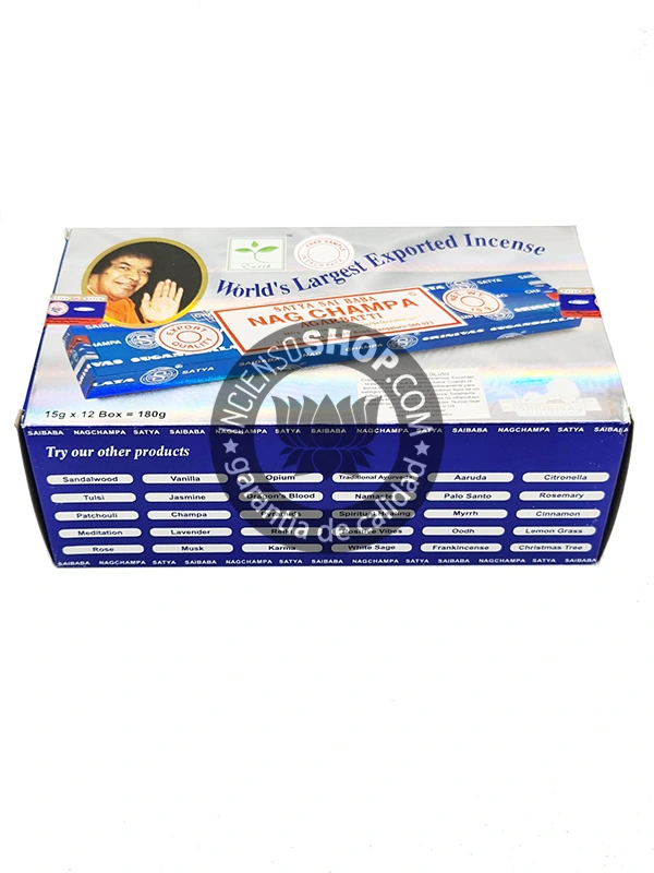 Propiedades y características del incienso de Nag Champa Satya en caja